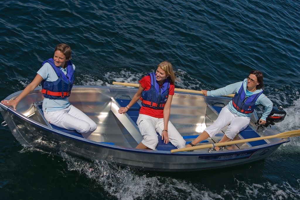 Hergestellt aus korrosionsfestem Aluminium hoher Qualität, entsprechend Flugzeugaluminium und zugelassen gemäß skandinavischem Bootsstandard von Det Norske Veritas und dem Schwedischen Zentralamt für Schifffahrt kommt das Fishing 410 daher. Das Fishing 410 ist etwas kleiner als das Modell 440, etwas leichter und lässt sich ebenso problemlos rudern und auch auf dem Autodach transportieren. Es ist das perfekte Boot für eine Person und für Binnenseen, vor allem, weil es sich auch mit einem kleinen Suzuki Viertakt Außenbordmotor ausrüsten lässt. Dieses Boot verspricht viel Angelspaß auf flachen wie auf tiefen Gewässern, vom Frühlingsanfang bis tief in den Herbst hinein. Wenn es dann an der Zeit ist, das Boot für den Winter aus dem Wasser zu holen, so ist auch das bei diesem Leichtgewicht kein Problem.